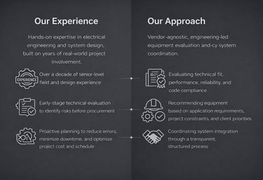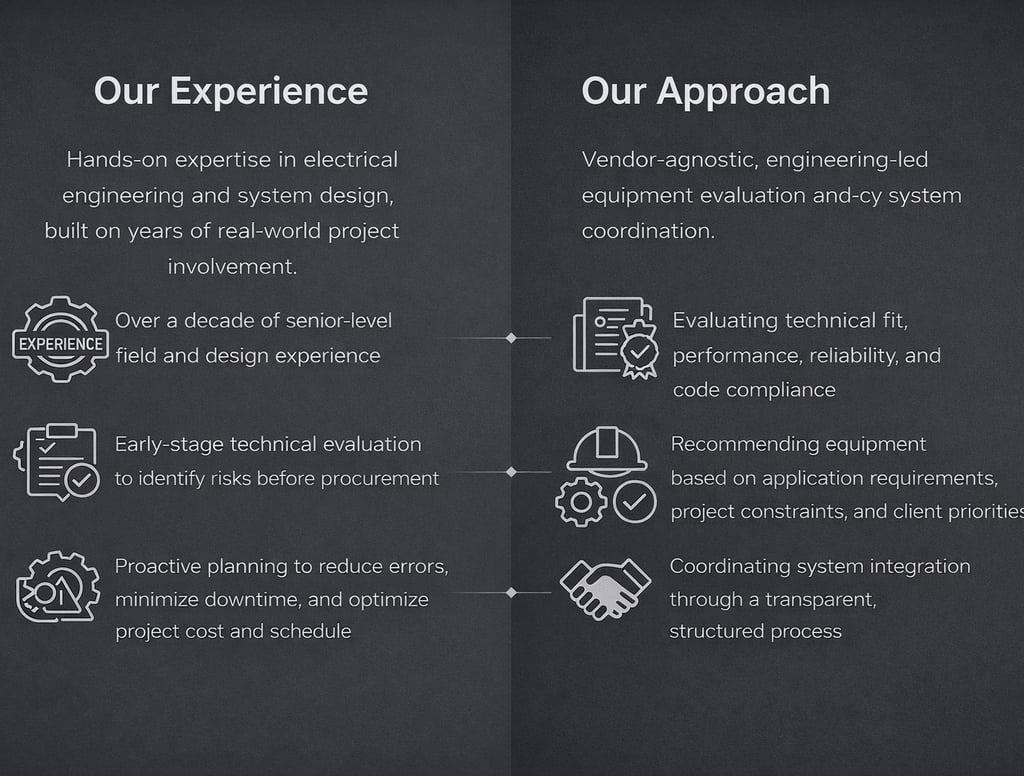 Equipment sourcing guided by licensed professionals, technical requirements, and long-term system performance.